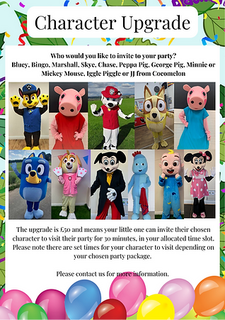 Secure now for a £50 deposit* and get a FREE character visit & an extra 30 minutes play time (worth £100)