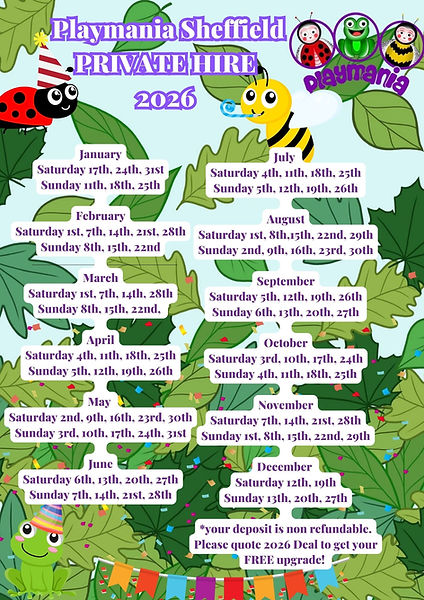 WEEKEND PRIVATE HIRE BOOKINGS FOR 2026